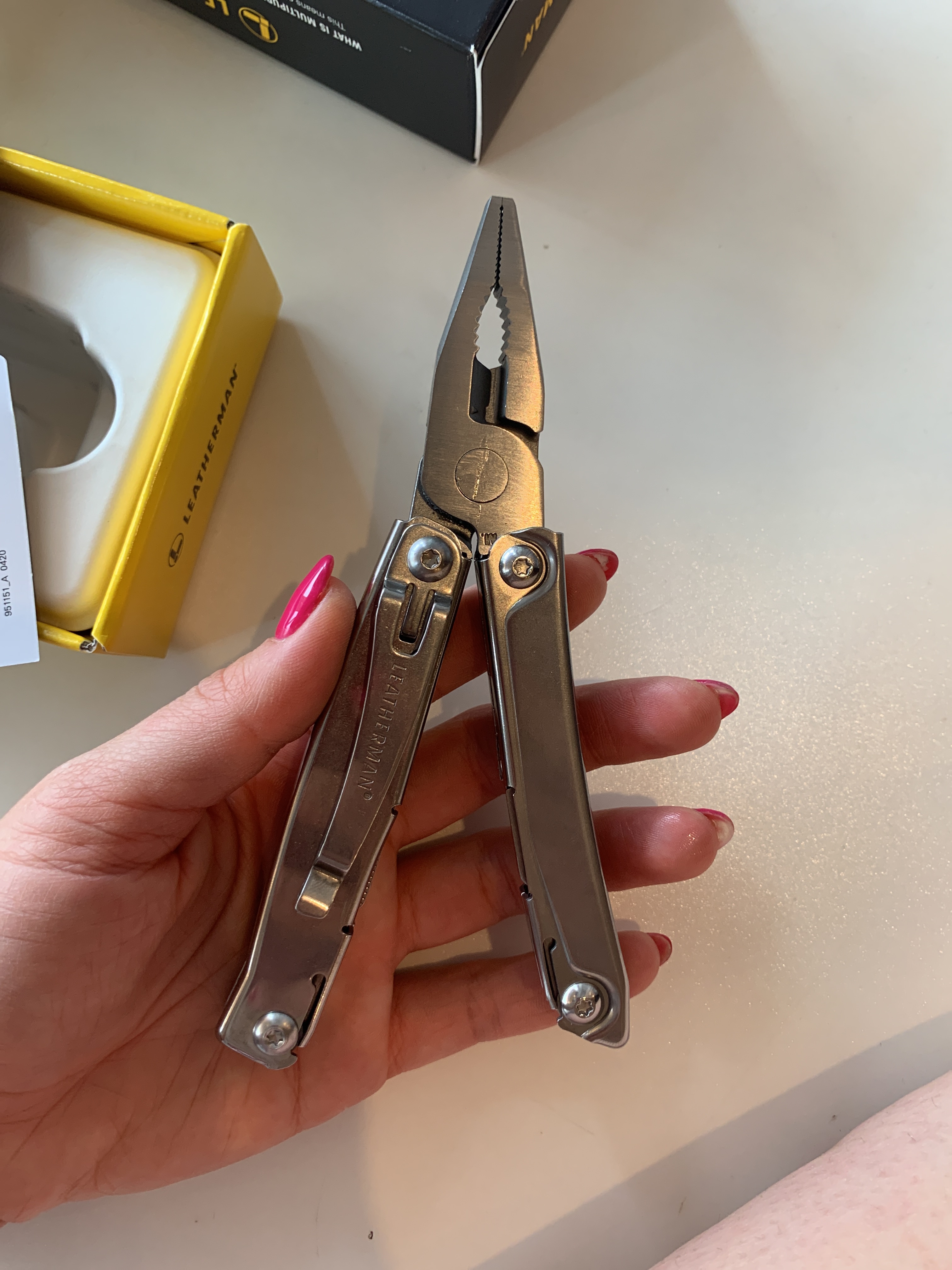 Подарила супруга на день рождения сей чудесный агрегат. Заточка клинка - замечательная, не ожидал такого от мультитула. остальные инструменты были уже опробованы в бою, и пассатижи и отвертка отработали за каждый шегель по 10 раз, хотя в руках всего месяц. Но есть и нюансы: некий люфт на карманной клипсе, который не как не исправляется, и слишком легкий ход при разгибе на переход в пассатижи (хотя может у меня так руки - крюки устроены). Рад и горд своей супругой за столь крутой выбор. А мультич всем советую!